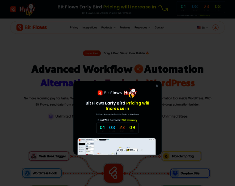 Tired of limited Flows and steps, choose this advanced Workflow automation like Zapier inside WordPress. Unlimited Flows and integrations with cheapest price.