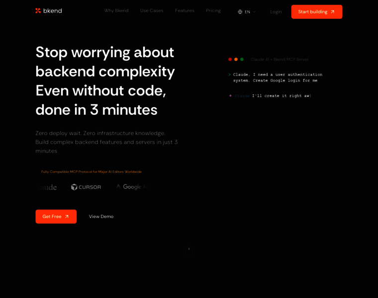 Zero Deploy Time. AI Driven. 복잡한 백엔드 기능과 서버를 3분만에 완성하는 AI 네이티브 Backend as a Service. 배포 대기 시간 Zero, 인프라 지식 Zero.