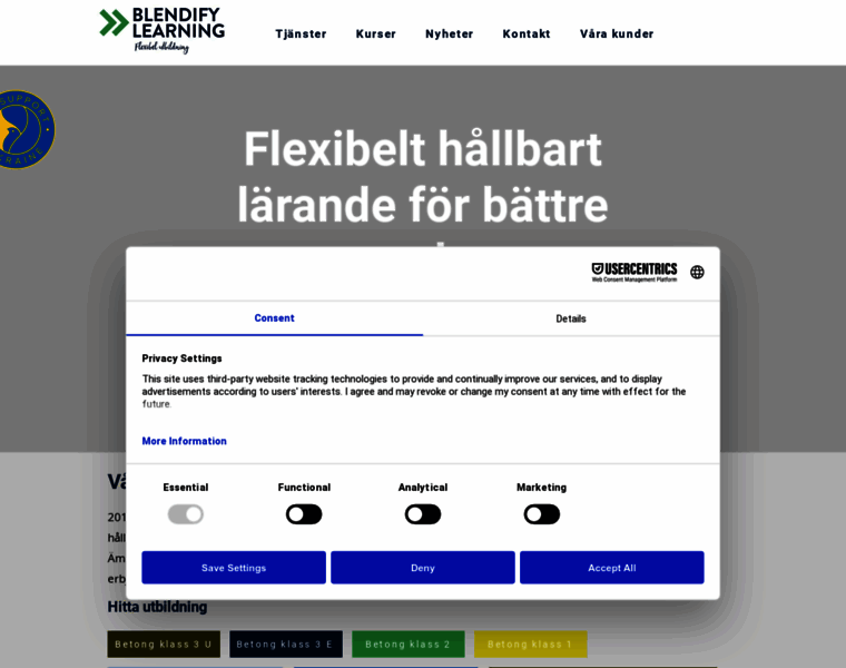 Blendify Learning AB fokuserar på flexibelt lärande genom att blandar olika utbildningsformat och tekniker. Digitalt, klassrum, online. Utbildaren som en lärcoach där lärandet och effekten av utbildningen står i fokus. Sveriges ledande utbildare inom betong klass 2 och 1