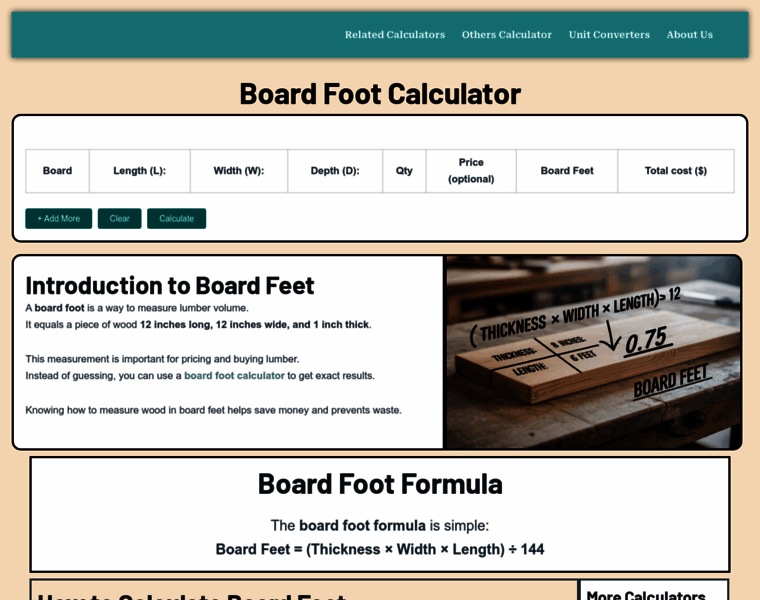 Learn how to calculate board feet with simple formulas. Use our board foot calculator for accurate lumber measurements and quick free results.