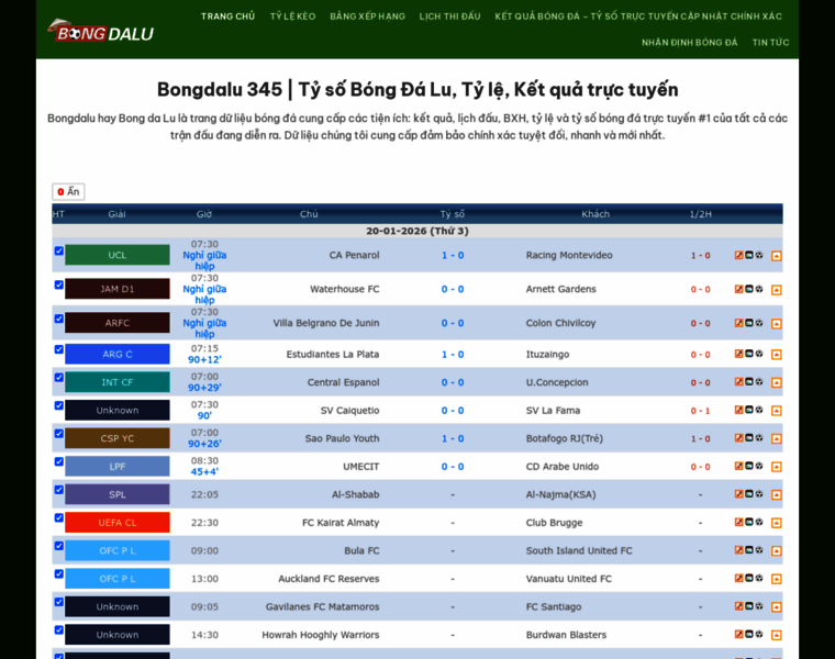 Bongdalu hay Bong da Lu là trang dữ liệu bóng đá cung cấp các tiện ích: kết quả, lịch đấu, BXH, tỷ lệ và tỷ số bóng đá trực tuyến #1 của tất cả các trận đấu