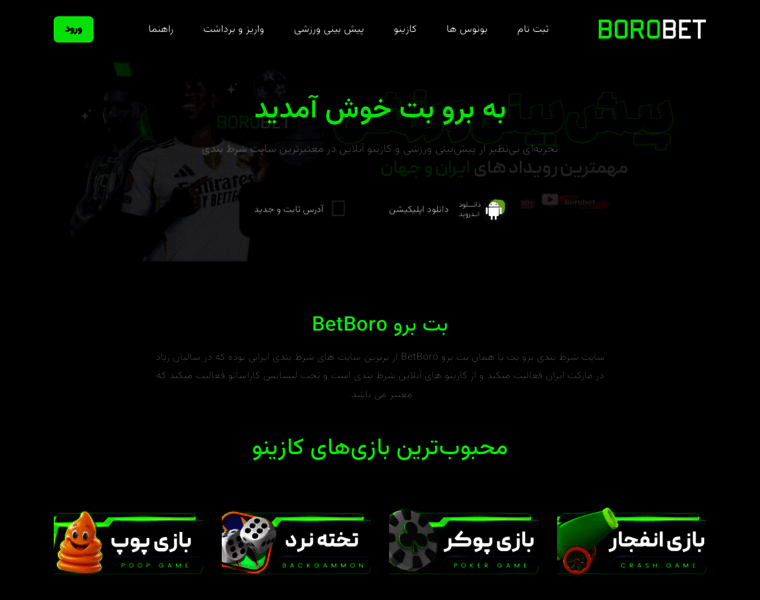 برو بت (BoroBet) معتبرترین سایت شرط بندی با بازی انفجار، پوکر، تخته نرد و پیشبینی فوتبال. واریز آنی و بونوسهای ویژه.