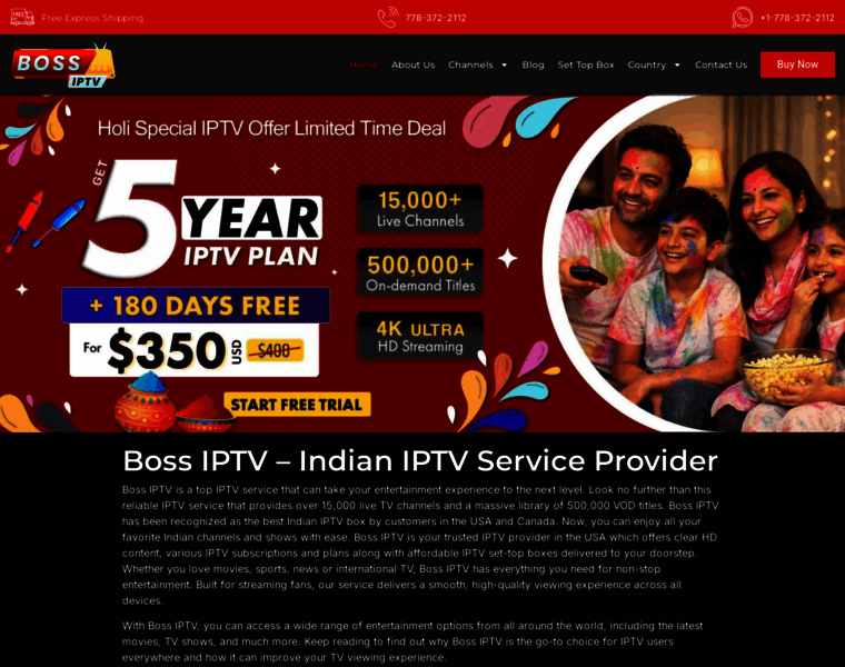 Boss IPTV Subscription Service Provider offers 15000+ live channels and 500000+ VOD in 4K/HD quality with no buffering on all devices.