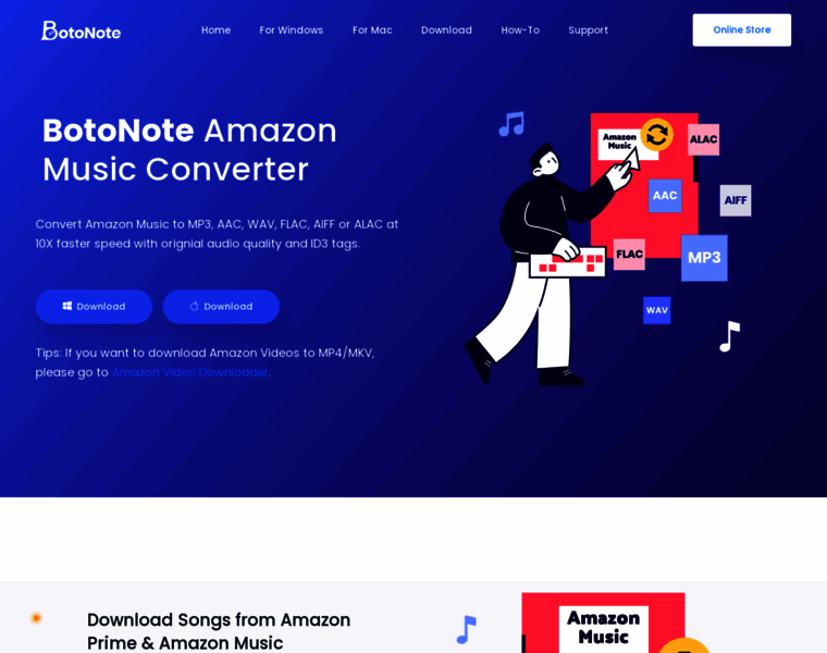 BotoNote is a professional Amazon Music Downloader provider. BotoNote Amazon Music Converter is a simple yet effective tool that can convert Amazon music to MP3, AAC, WAV, FLAC, AIFF or ALAC format on a Windows PC and Mac computer.