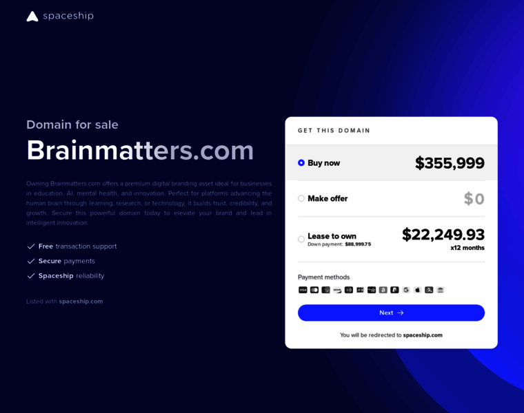 The domain name brainmatters.com is for sale. Make an offer or buy it now at a set price.
