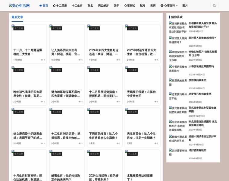 安心网是一个以星座、生肖、八字分析人的性格特点的网站。这里你可以了解星座、生肖、八字命理、民间习俗等知识,同时还能查询12星座运势,婚姻八字配对测算等。