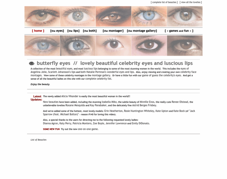 Butterflyeyes.com Homepage Change Through The Years