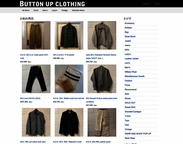 Button Up Clothing | 青森県弘前市に店舗を構える古着屋「BUTTON UP clothing」です。海外で買い付けたヴィンテージからレギュラーまで幅広く展開しています。
