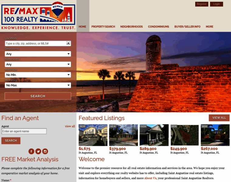 St Augustine FL Homes for Sale and St Augustine FL Real Estate. Contact RE/MAX 100 Realty at (904) 825-2700. We specialize in Saint Augustine FL Area Homes, and Listings representing both Home Buyers and Home Sellers. remax 100 realty, Search for properties, Search for foreclosures, search for new listings, find an agent,