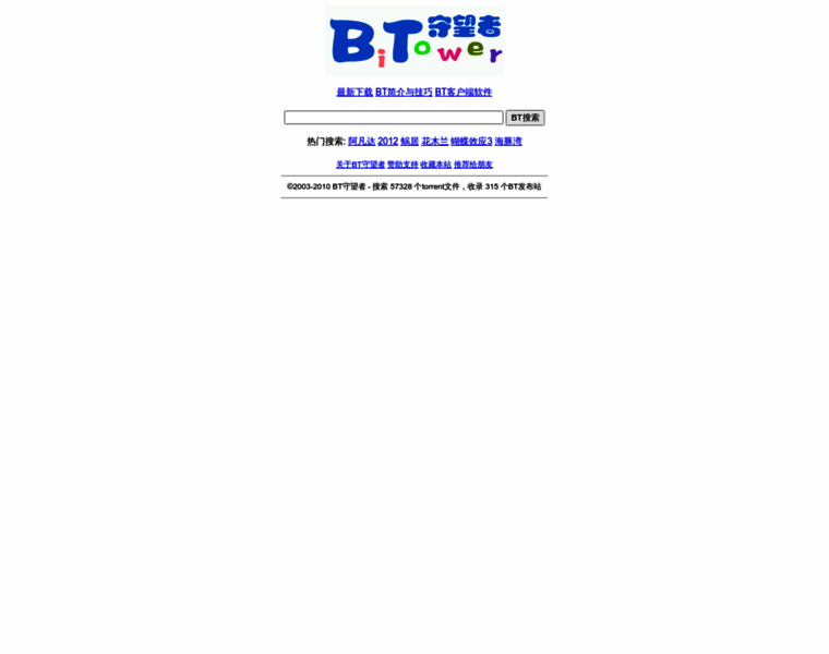 BT守望者(BiTower)--BT搜索引擎 | BitTorrent搜索引擎 | 热门综艺节目/电视剧/电影/游戏/软件/MP3/考试资料/培训讲座 | 下载