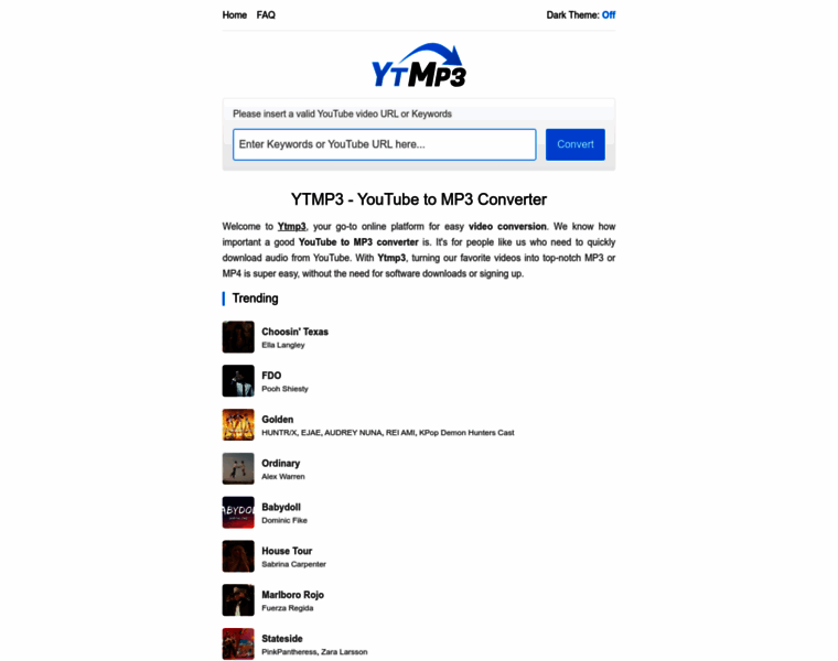 YTMP3 - YouTube to Mp3 Convert (Fast, Secure and 100% Free)