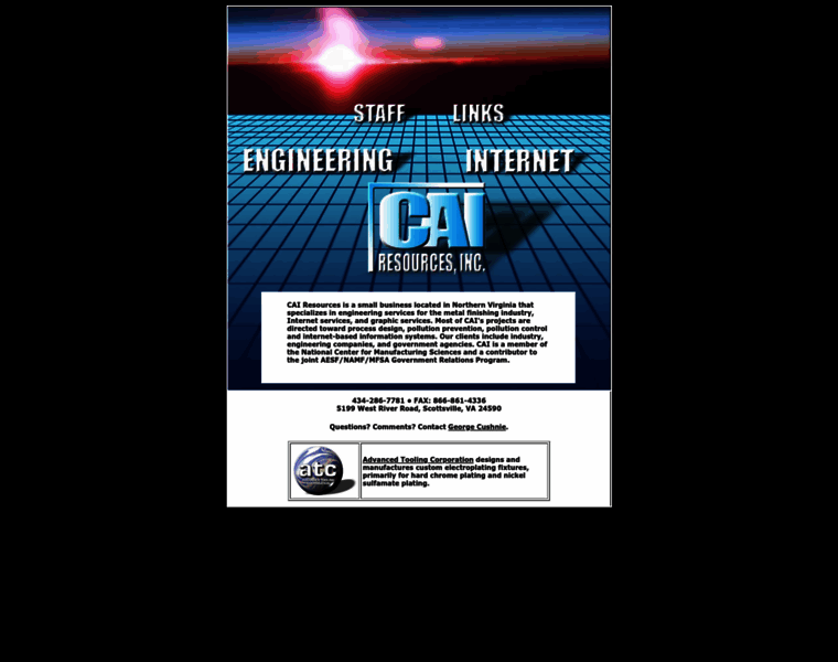 CAI Resources is a small business located in Northern Virginia that specializes in engineering services for the metal finishing industry, Internet services, and graphic services. Most of CAI's projects are directed toward process design, pollution prevention, pollution control and internet-based information systems. Our clients include industry, engineering companies, and government agencies.