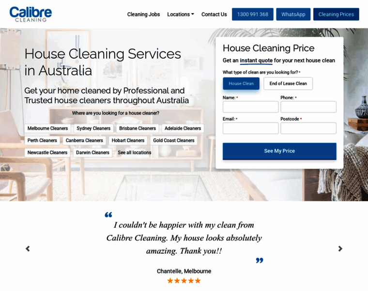 Calibre Cleaning provides house cleaning, end of lease cleaning and specialist services across Australia. Vetted, insured cleaners with upfront pricing. Book online.