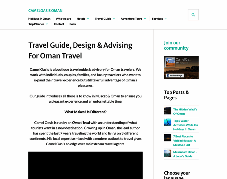 Camel Oasis is a boutique travel guide & advisory for Oman travelers. We work with individuals, couples, families, and luxury travelers who want to expand their travel experience but still take full advantage of Oman's pleasures.Our guide introduces all there is to know in Muscat & Oman to ensure you a pleasant experience and an…