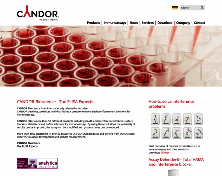 CANDOR Bioscience develops, produces and distributes premium solutions for immunoassays such as HAMA and interference blockers, surface blockers and stabilizers.