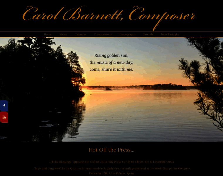 Welcome to the website of world-renowed composer Carol Barnett. Explore works, news and upcoming events here.