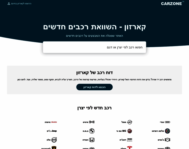 מחפשים רכב? קארזון משווה את כל הדגמים החדשים ומשומשים, חושף הנחות, מבצעים ומחירי אפס ק״מ, ודוחות רכב משומש - כל מה שחייבים לדעת לפני שקונים. היכנסו