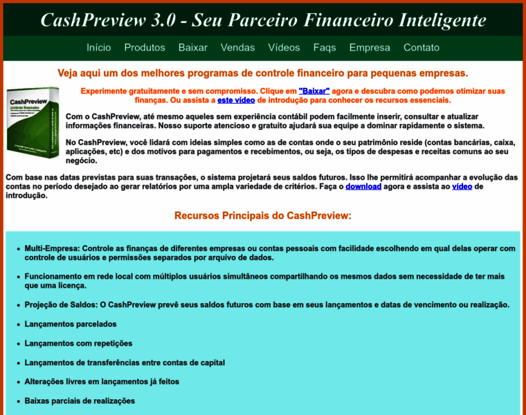 Programa de controle financeiro empresarial com fluxo de caixa, contas a pagar, contas a receber, extratos, balanço financeiro, clientes, fornecedores, centros de custo ou lucro, orçamentos e saldos para contabilidade de empresas ou finanças pessoais e economia doméstica.
