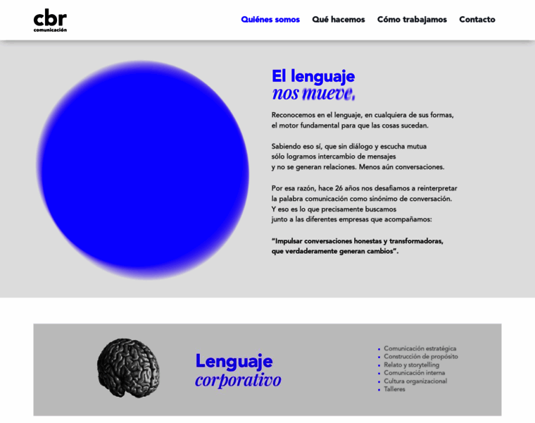 Comunicación y consultoría estratégica en todos sus lenguajes: Publicitario, Corporativo, Cultura Interna, Editorial, Audiovisual, Digital, Gamificación y Experimental #SOMOSCBR
