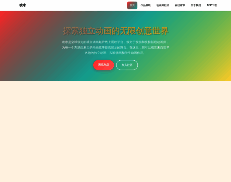 喷水是全球领先的独立动画短片线上展映平台,汇聚新锐动画师作品,提供作品展示、创作交流、项目众筹等一站式服务。探索独立动画、实验动画、学生动画作品的无限创意世界。