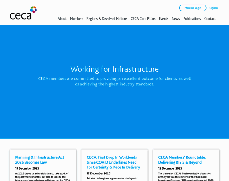 CECA is the representative body for companies who work day-to-day to deliver, upgrade, and maintain the country’s infrastructure. With more than 300 members based across six English regions, as well as the devolved nations of Scotland and Wales, the Civil Engineering Contractors Association represents firms who together carry out an estimated 70-80 per cent of all civil engineering activity in the UK, in the key sectors of transport, energy, comm...