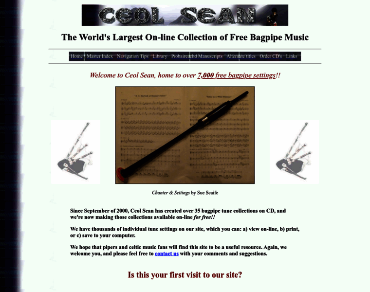 Ceol Sean - Free On-line Bagpipe Settings - Welcome to Ceol Sean!!