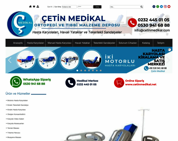 Çetin Medikal olarak her türlü tıbbi malzeme satışı ile İzmir, Manisa, Aydın, Denizli, Muğla, Kütahya, Balıkesir illerimize teslimat yapmaktayız. İki motorlu hasta yatağı, üç motorlu hasta yatağı ve dört motorlu hasta yatağı kiralama ve satış hizmeti kapsamında haftaiçi her gün ve cumartesi günleri kurulum hizmeti vermekteyiz.