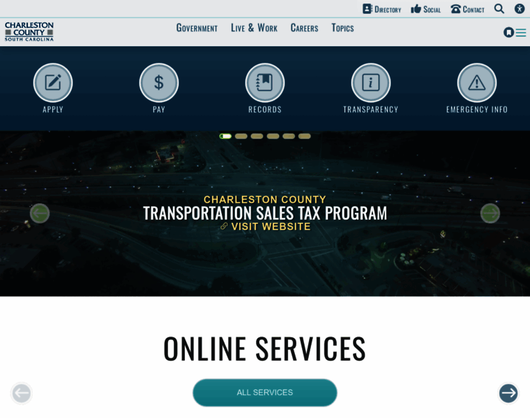 Welcome to the official website for Charleston County, SC Government. Our Mission is to promote and protect the quality of life in Charleston County by delivering services of value to the community.