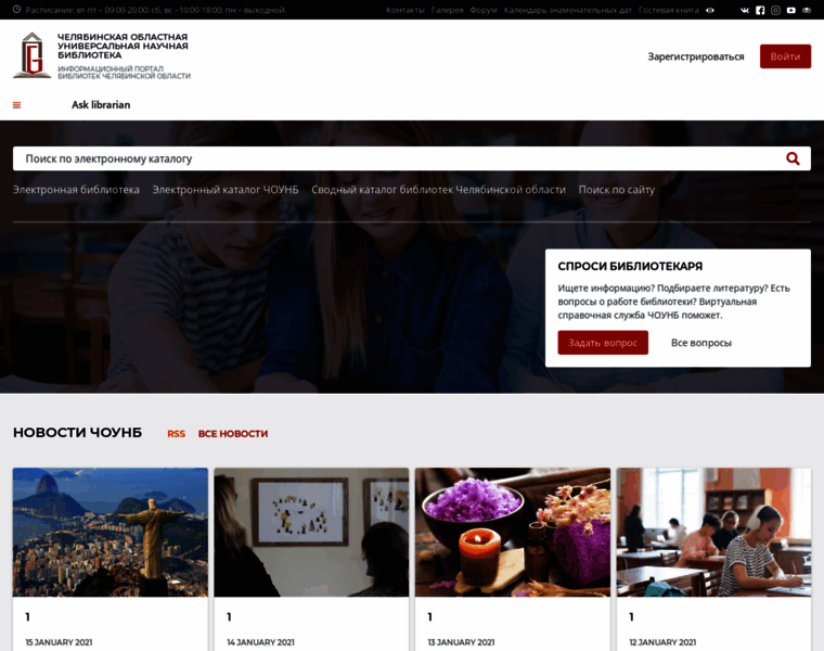 ЧОУНБ – знаковое место культурной жизни Челябинска. Информация о книгах, электронных ресурсах, услугах и событиях. Регистрация читателей, Виртуальный абонемент, Виртуальная справка. Новости и адреса библиотек Челябинской области.