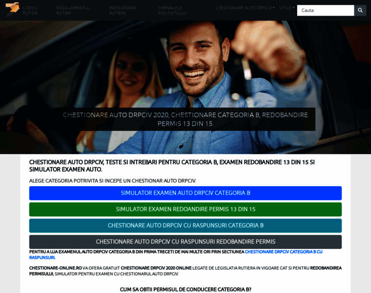 Chestionare auto DGPCI 2026 gratuite, teste si intrebari pentru categoria B, redobandire permis 13 din 15, Legislatia Rutiera