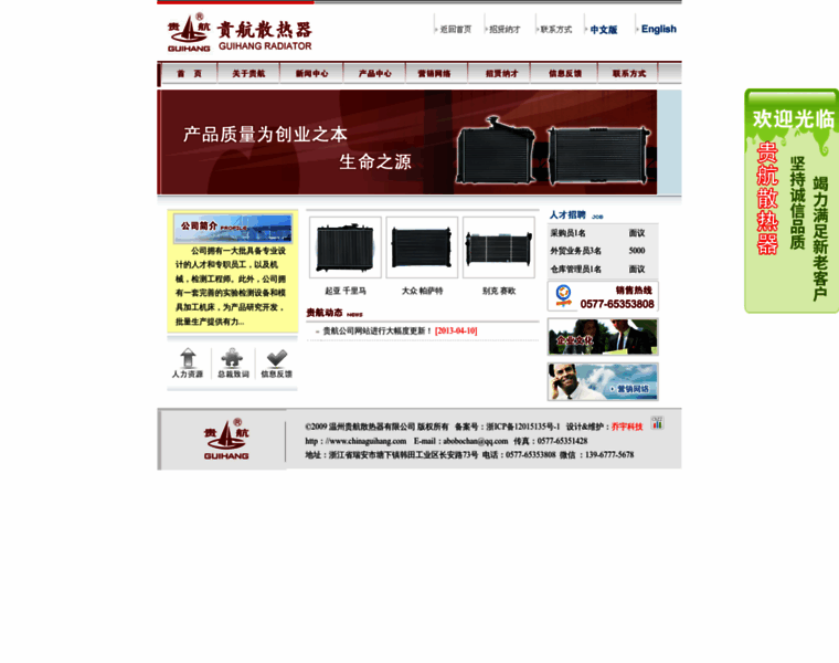 贵航散热器成立于1992年,专注于汽车散热器,汽车水箱,汽车暖风机,铝制散热器,汽车空调冷凝器等产品生产及研发。销售热线:0577-65353808