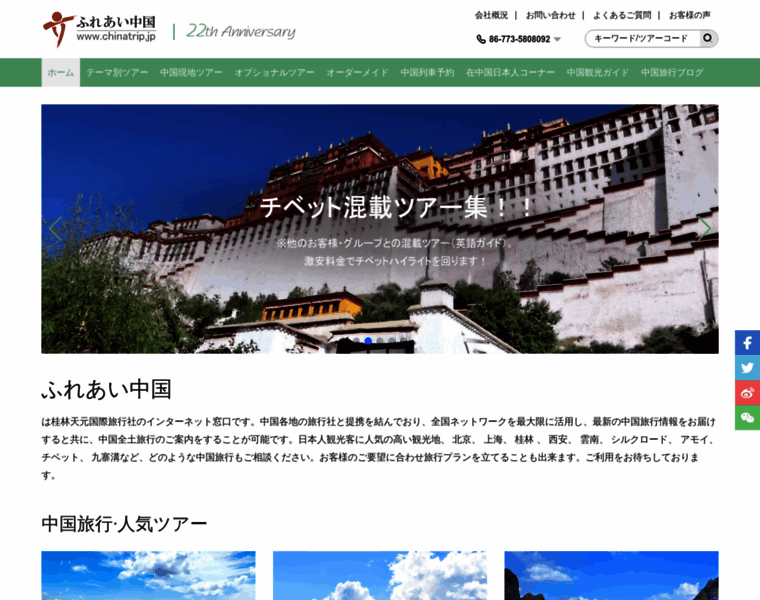 中国旅行代理店―ふれあい中国:中国旅行、中国観光、格安中国ツアー、桂林の最新ツアー、西安ツアー、ウルムチツアー、成都ツアー、チベットツアーや中国旅行情報などが満載。お得な中国旅行はふれあい中国におまかせ!