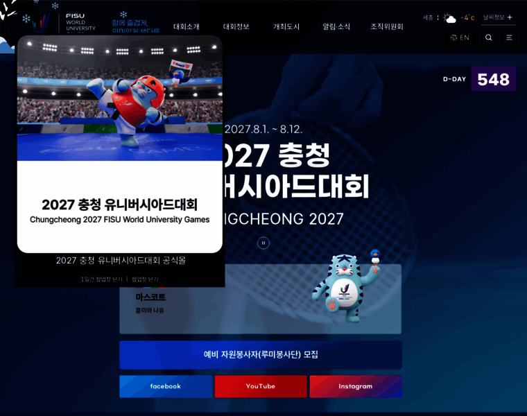 2027 충청권 하계세계대학경기대회 홈페이지를 방문해 주신 여러분을 진심으로 환영합니다.