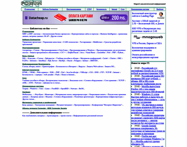 http://www.citforum.ru, Сервер Информационных Технологий содержит море свободно доступной информации на русском языке по всем областям компьютерных технологий