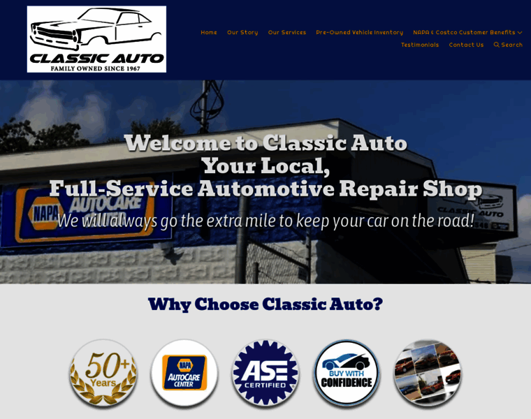 Classic Auto is an automotive repair shop in Waterbury, Ct. They serve surrounding towns Watertown, Wolcott, Bristol, Middlebury, Naugatuck. Their services include routine maintenance and diagnostics, oil changes, tire changes, transmission repair, exhaust repair, suspension repair, front end wheel alignments, . They are a NAPA CareCare Dealer and a certified COSTCO Dealer. Pre-owned vehicles are in inventory.