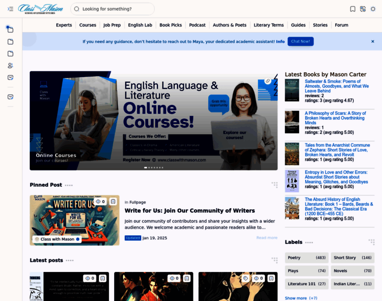 Discover courses, job prep resources, and study guides on poetry, novels, and drama at Class with Mason. Enhance your skills with expert-crafted conte