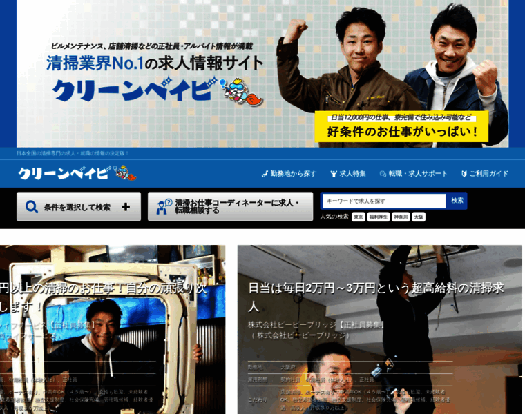 ビルメンテナンス、店舗清掃などの正社員・アルバイト情報が満載
