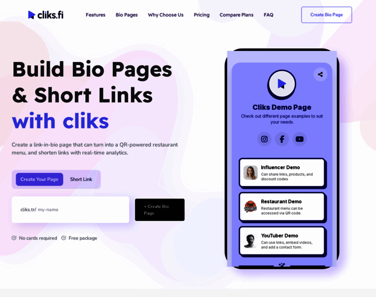 cliks.fi - Bio Pages, Short Links, QR & Analytics