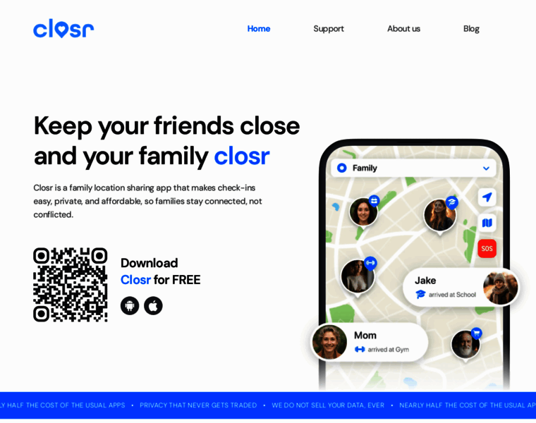 Stay closr wherever life takes you. With built-in privacy, clear alerts, and simple sharing, Closr helps families feel connected—not tracked—on iOS and Android.