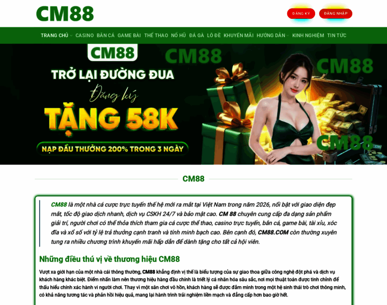 CM88 là nhà cái uy tín nhất Việt Nam, chuyên cung cấp kho game đa dạng, nhiều khuyến mãi khủng, bảo mật cao, CSKH 24/7, giao dịch siêu tốc. Đăng ký nhận +88K