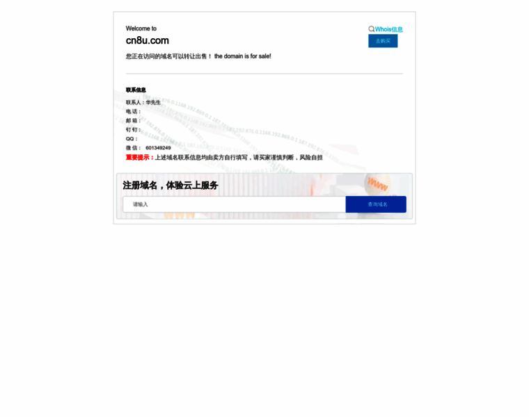 The registrar of cn8u.com is Alibaba Cloud Computing (Beijing) Co., Ltd. and the name expires on 2025-03-06. According to open source data, you can reach the owner at 1266636@qq.com but please make sure you have a good reason for unsolicited messages. Their country of residence is China.