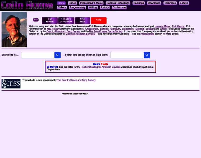 Notes on teaching dance technique, shareware Dance Organiser program, freeware editor/FTP client, dance instructions and music