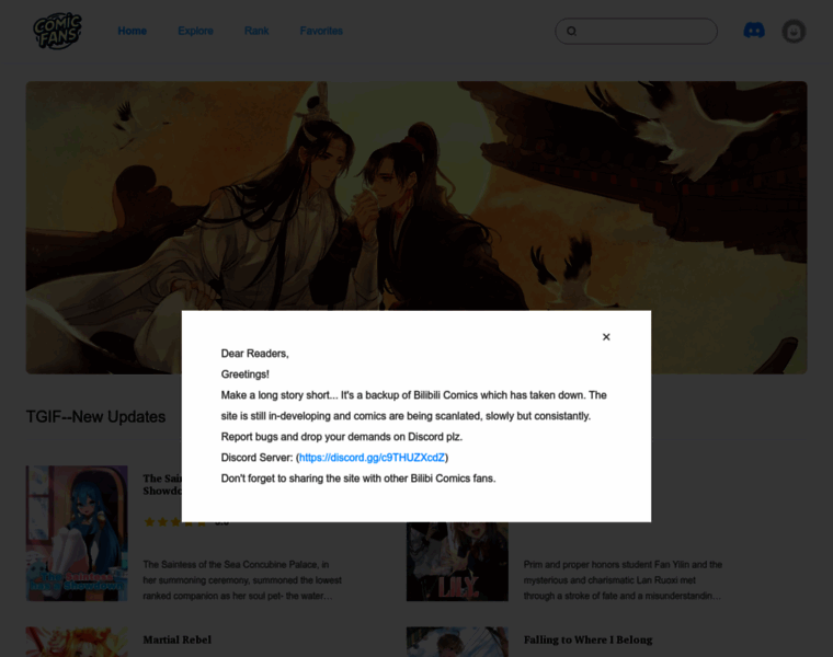 Comic Fans is a great online webtoons reader among all reading apps. Romance, Yaoi, Fantasy, bl, and other series are in their original clarity, including Heaven Official's Blessing、Baili Jin Among Mortals、Demon Apartment.