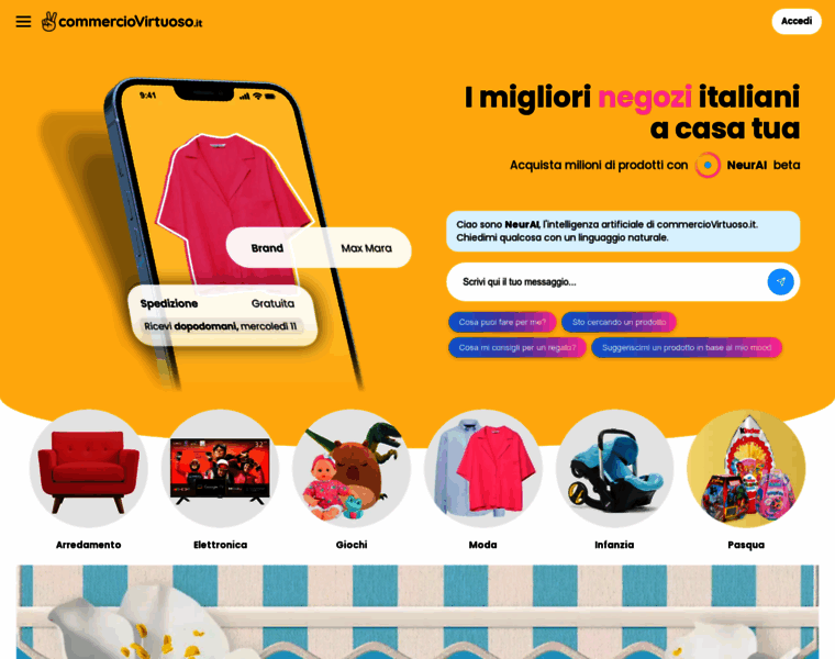 Scopri milioni di prodotti in moda, bellezza, fai da te, arredamento. Il Marketplace AI che ti connette ai migliori negozi italiani.