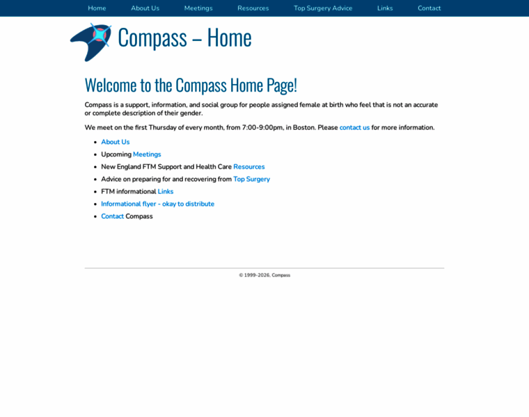 Compass is a Boston-area support, information, and social group for people assigned female at birth who feel that that is not an accurate or complete description of their gender.