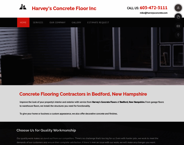 Improve the look of your property's interior and exterior with Harvey's Concrete Floors of Bedford, New Hampshire. Call us at 603-472-3111.