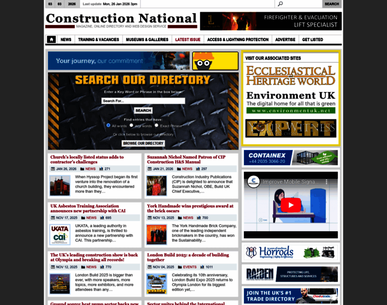 Construction Directory and Magazine including Construction Housing and Construction National; includes the latest construction news, including regional England, Wales and Scottish breakdowns.