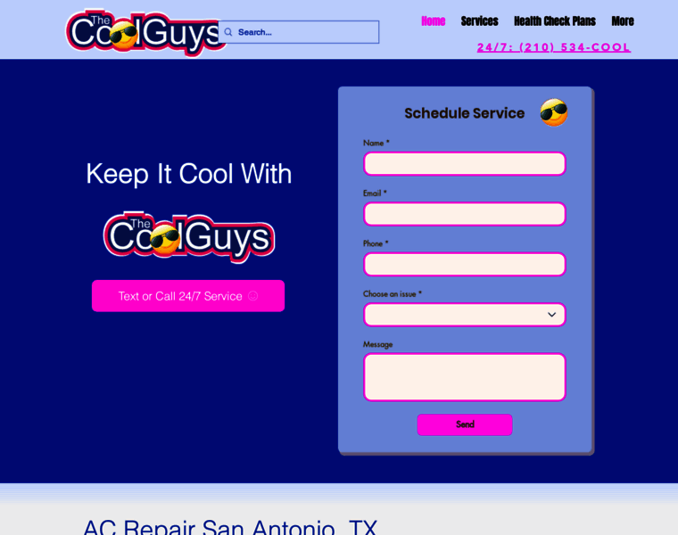 Cool Guys AC Services provides reliable air conditioning and HVAC services in San Antonio, TX. 24/7 AC repair, installation, heating services, air duct cleaning, plumbing, and emergency services. Established 2011. Call (210) 534-2665.