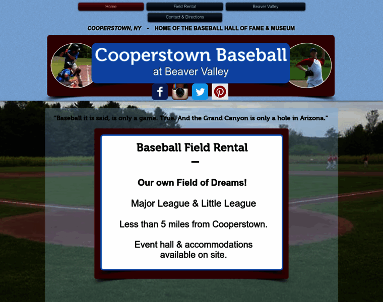 Major League and Little Leage Field Rentals. 5 miles from Cooperstown. Our own Field of Dreams!