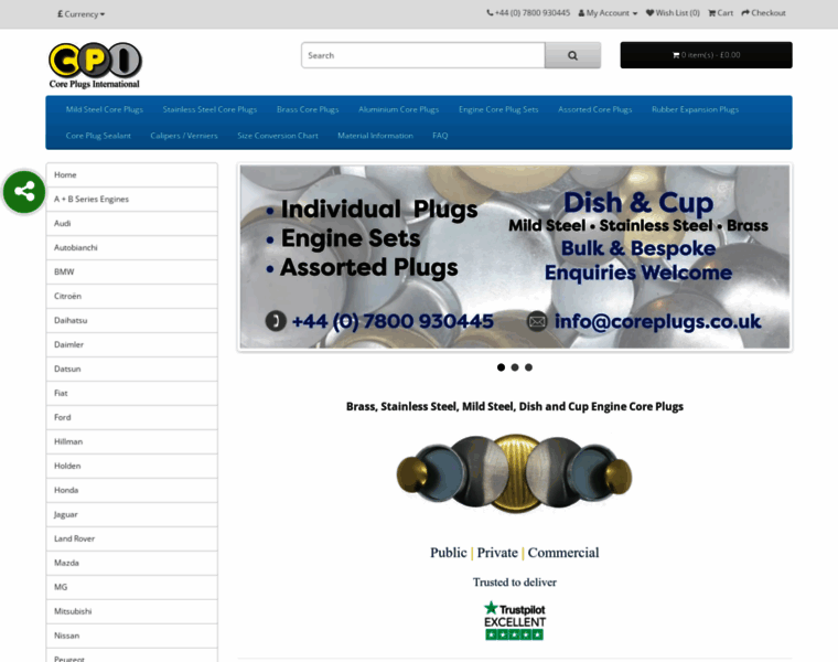 Possibly the world's Biggest Selection of Brass & Steel Core / Freeze / Plugs & Engine Sets | UK & Worldwide Delivery | Rated 5 stars on Trustpilot!